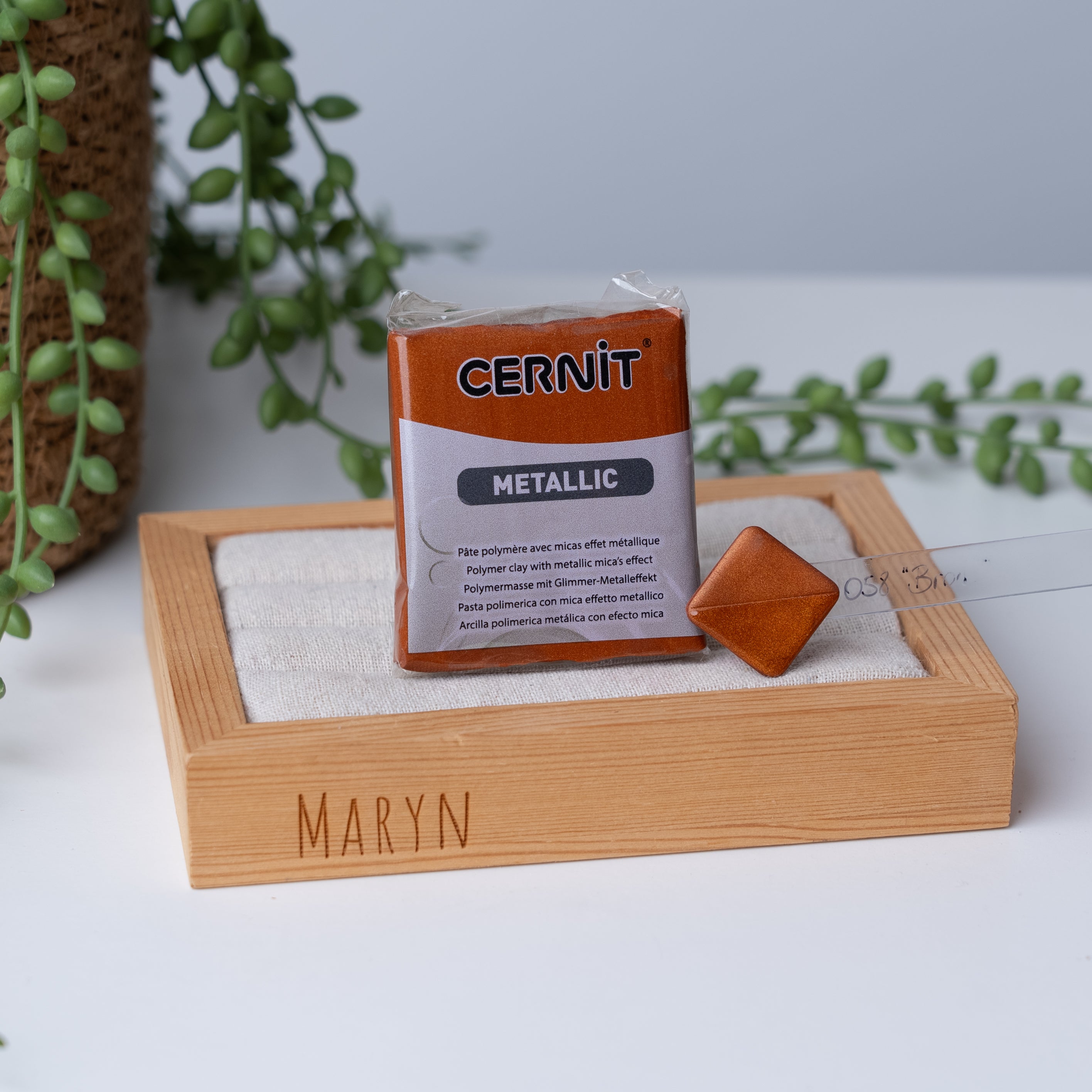 The metallic series gives your clay an extra sparkle because fine mica powder is processed in it. The clay is a bit drier than the other Cernit series, you can add some "soft mix" to it. Do you want the sparkle to stand out even more? Then you can finish the clay with the UV epoxy resin after baking.