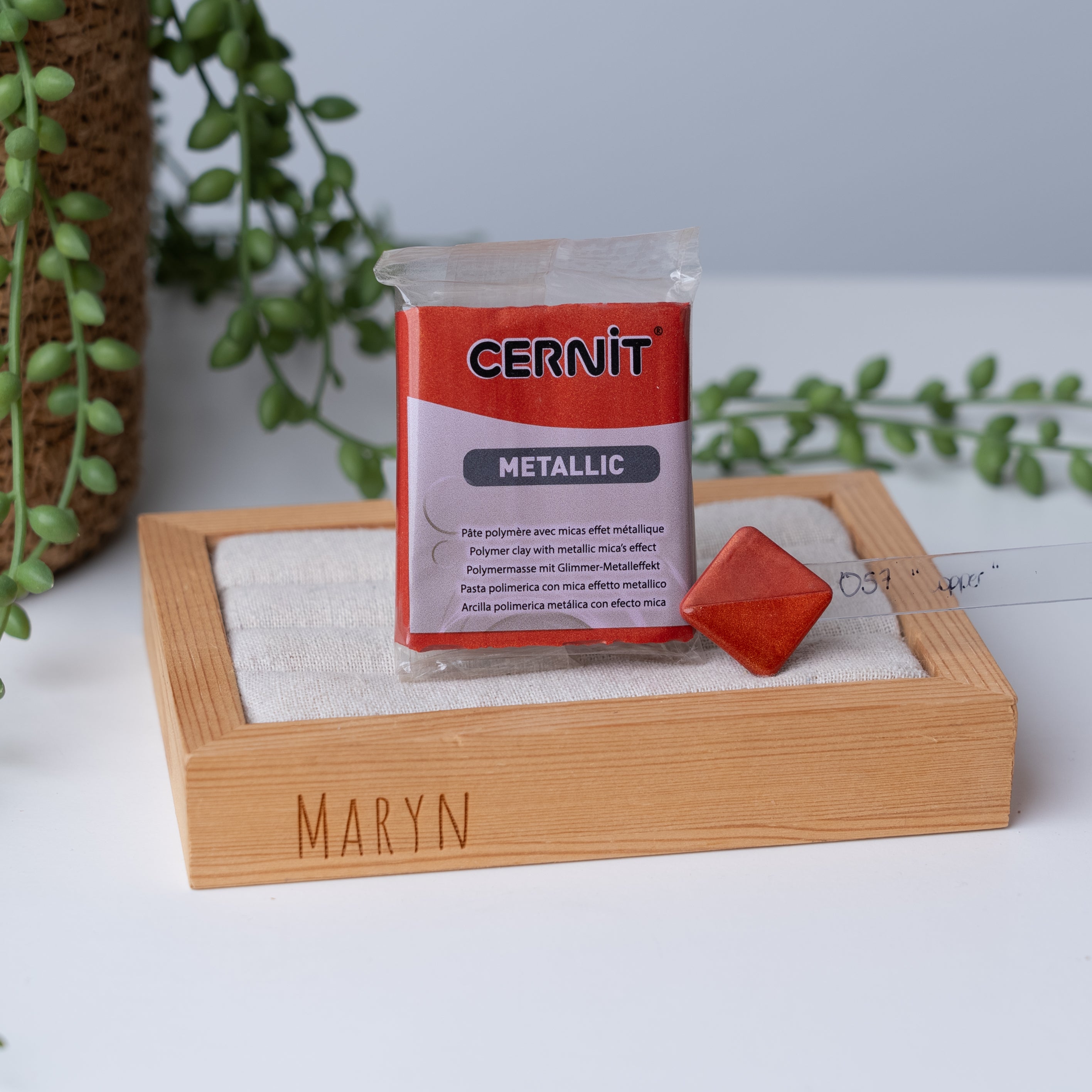 The metallic series gives your clay an extra sparkle because fine mica powder is processed in it. The clay is a bit drier than the other Cernit series, you can add some "soft mix" to it. Do you want the sparkle to stand out even more? Then you can finish the clay with the UV epoxy resin after baking.